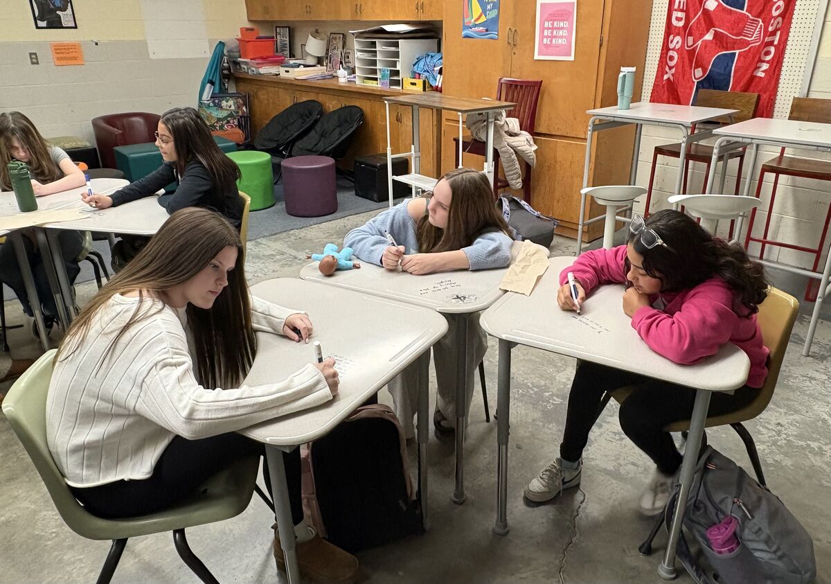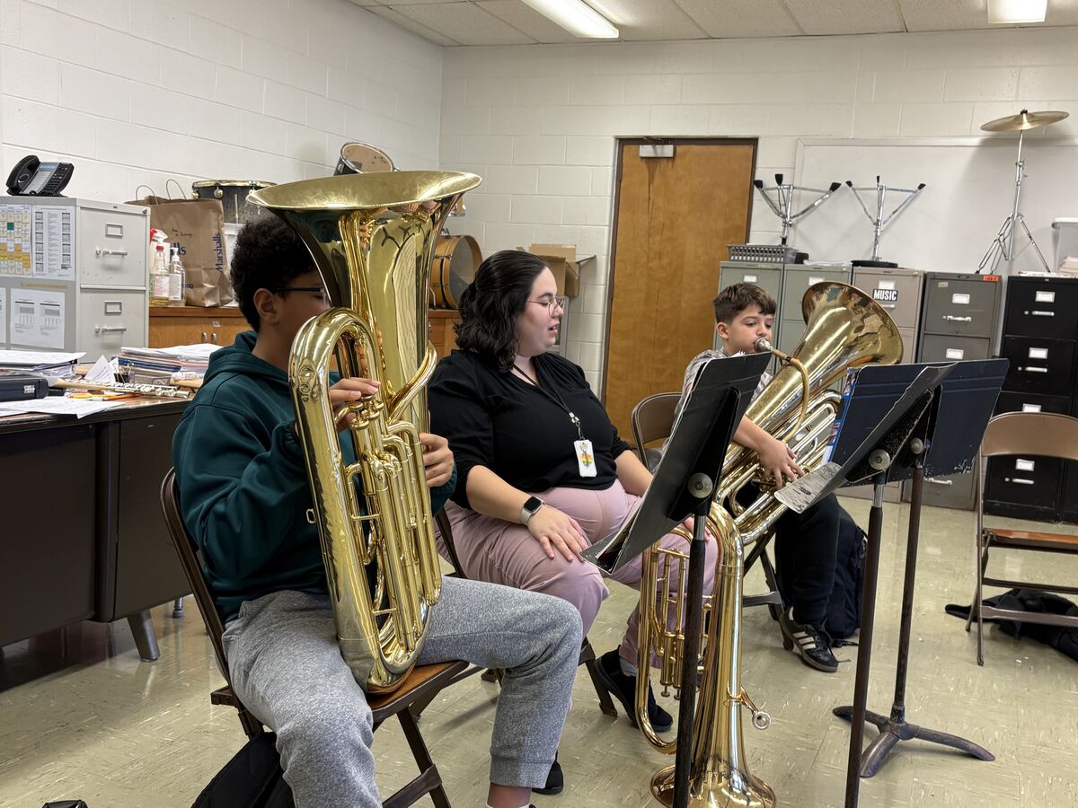 Students practice tuba in Band sectionals.Students wok through learning from mistakes in SELF class.