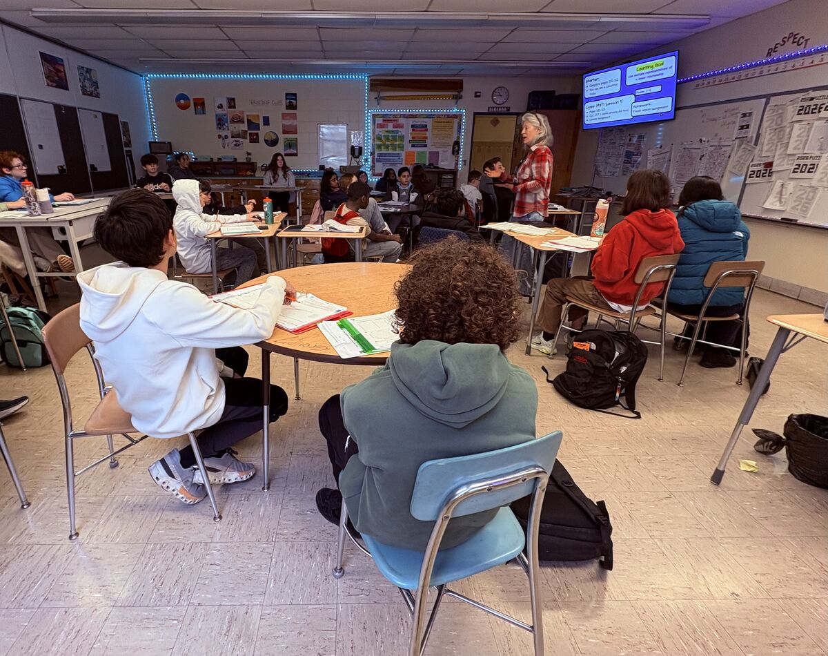 Ms. Frem leads a math discussion.